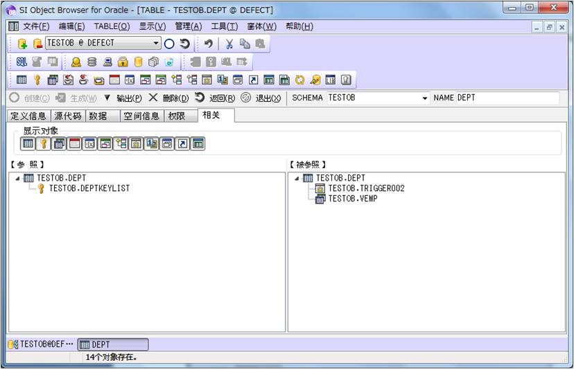 相关Tab中显示了与这个表对象有关系的所有其他对象。例如序列,视图,触发器等。双击这些对象,就