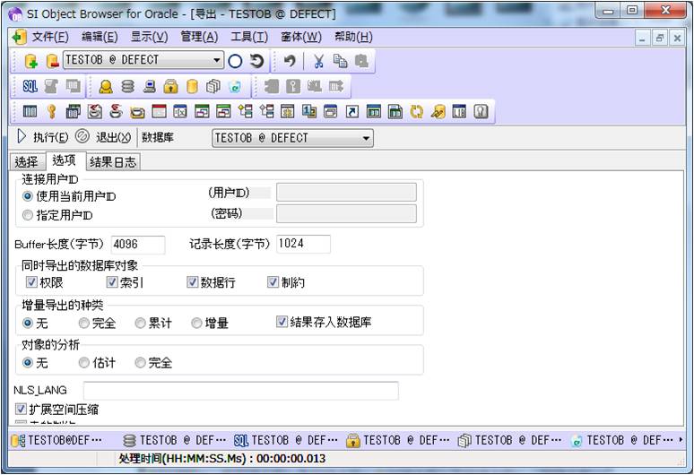看见NLS_LANG了吗?在这里可以设置你要保存dmp的编码类型。