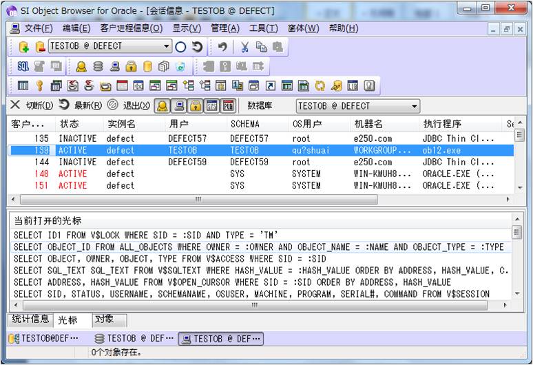 也能列出来?甚至是,该session现在打开了哪些cursor,当前使用了哪些对象?